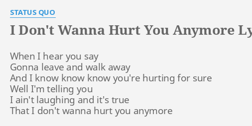 I Don T Wanna Hurt You Anymore Lyrics By Status Quo When I Hear You