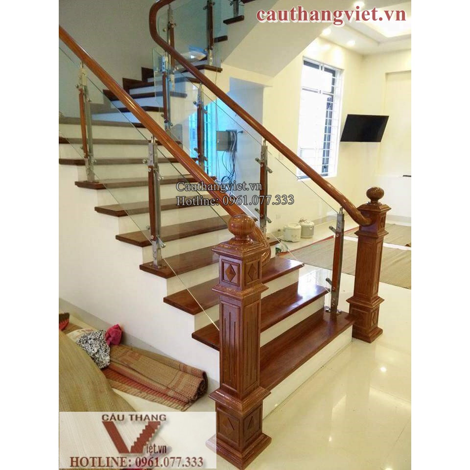 Lan Can Cầu Thang Kinh Tay Vịn Gỗ Cầu Thang Kinh Cường Lực Cầu Thang Bảo An Cầu Thang đẹp Ha Nội
