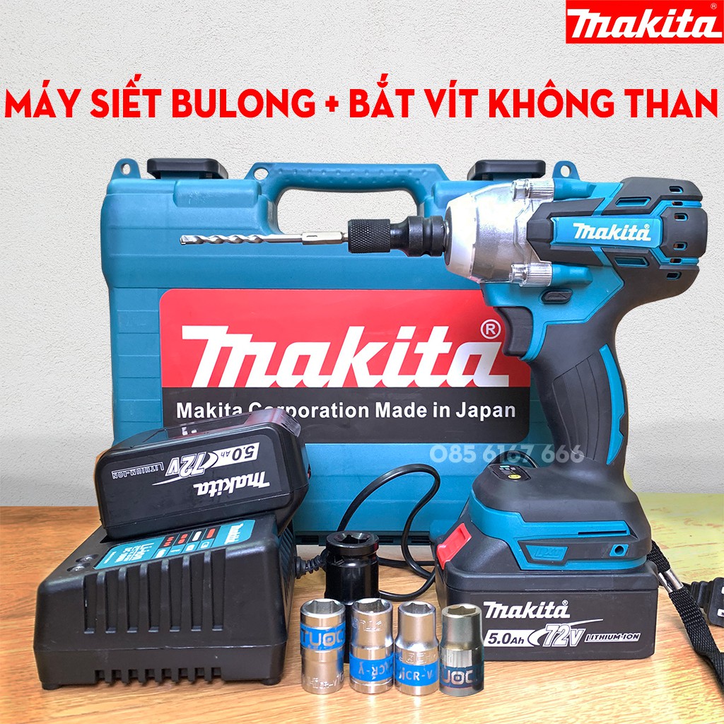May Siết Bulong Makita 72v 2 Pin Tặng 5 đầu Khẩu đầu Chuyển Bắt Vit May Siết Bu Long Khoan Pin Khong Chổi Than Shopee Việt Nam
