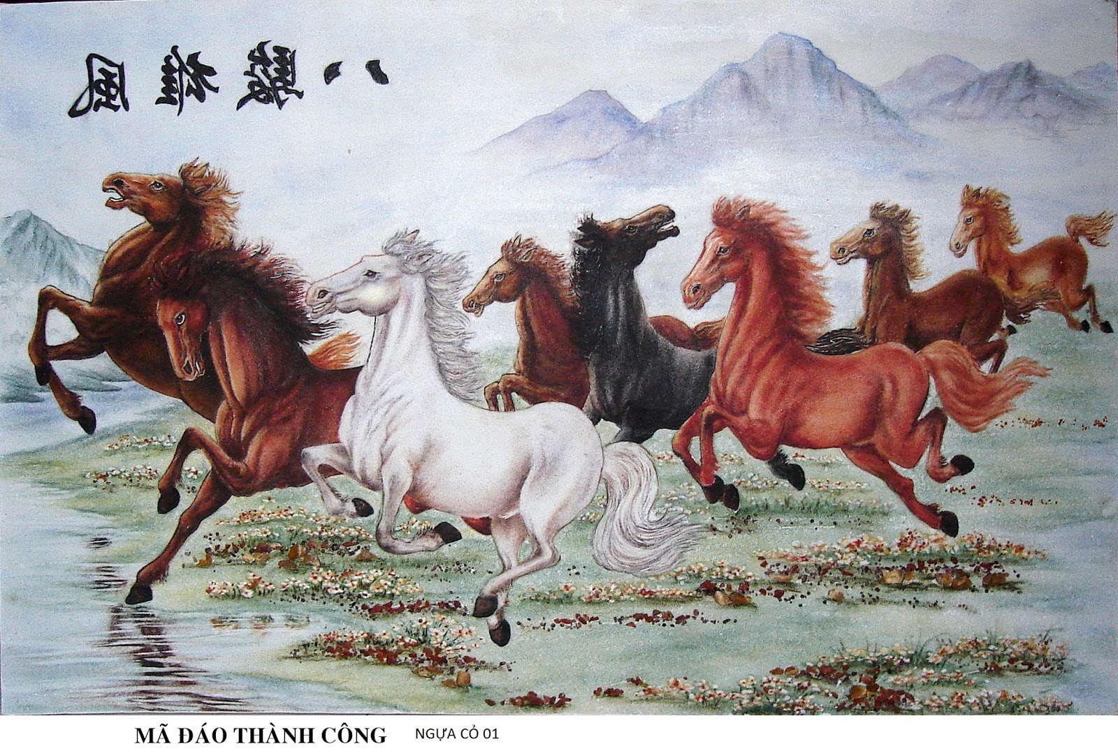Như đã nói ở trên tranh ngựa bát mã với 8 con ngựa đã quá quen thuộc với người chơi tranh. Mã đáo có nghĩa là may mắn quay về đi về. Thành ngữ tiếng hán thành ngữ tiếng việt 功成名遂 công thành danh toại 功成名就 công thành danh tựu. Danh gọi tắt của công nghiệp 工業.