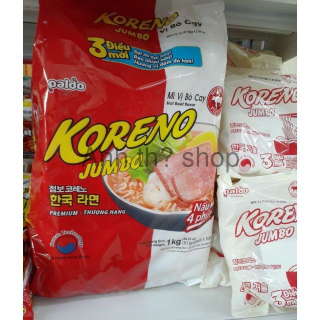 Mi ăn Liền Koreno Jumbo Han Quốc 1kg Vị Bo Cay Bịch 10 Goi Mi Cay Cấp độ Sợi To Dai Nhiều Vị Ga Kim Chi Tom Sale Rẻ Giảm Chỉ