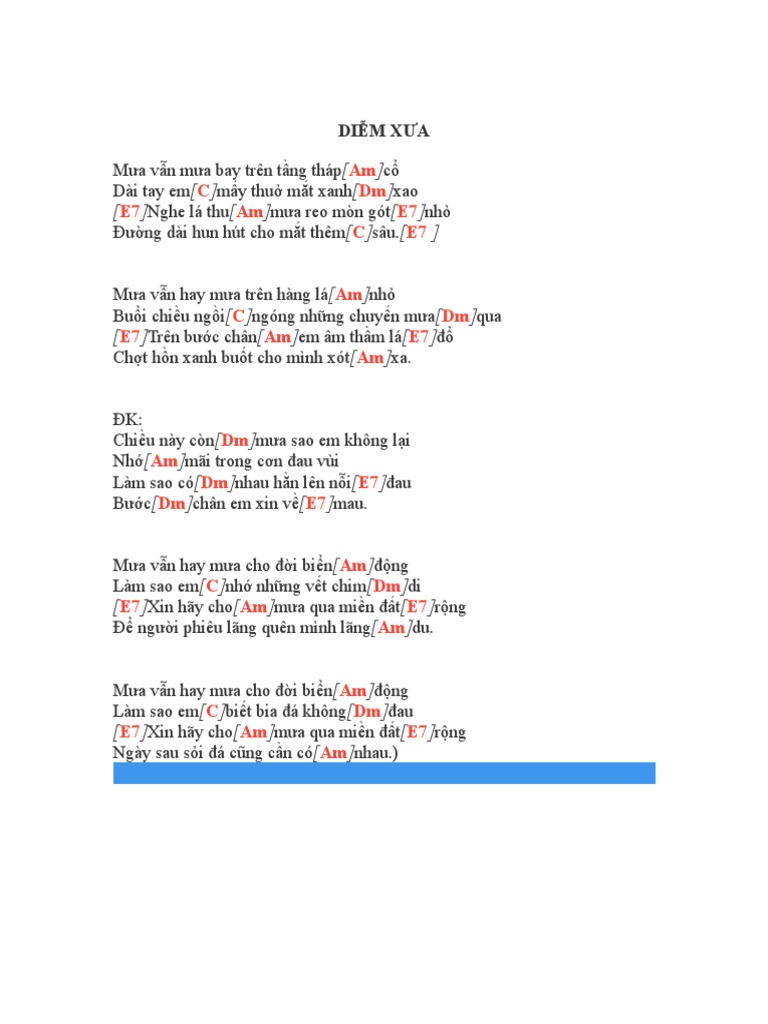 Chord Diễm Xưa Trịnh Cong Sơn Tab Song Lyric Sheet Guitar Ukulele Chords Vip