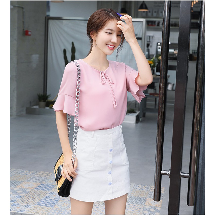 Ao Sơ Mi Nữ Gia Sỉ Kiểu Cổ Tron Tay Ngắn Loe Shopee Việt Nam