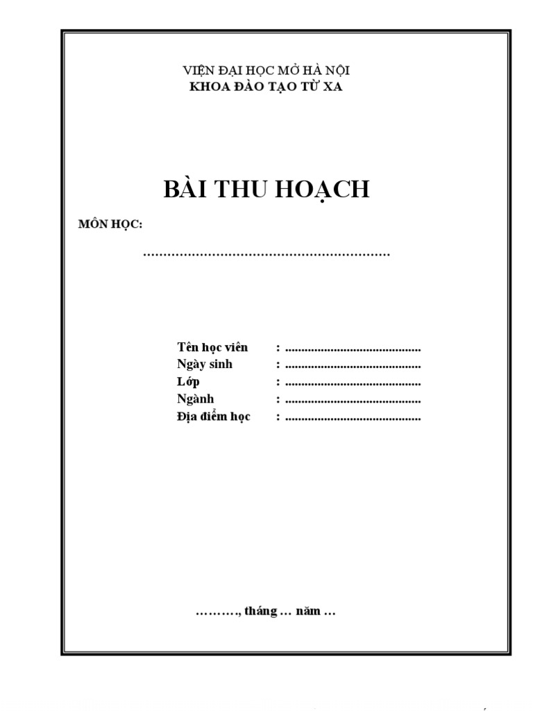 Mẫu Bài Thu Hoạch