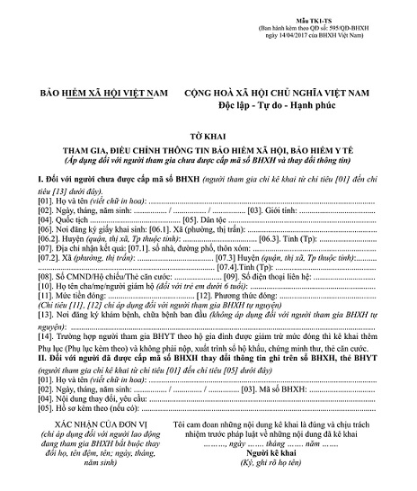 Mẫu Văn Bản Bảo Hiểm Xa Hội Từ Năm 2017