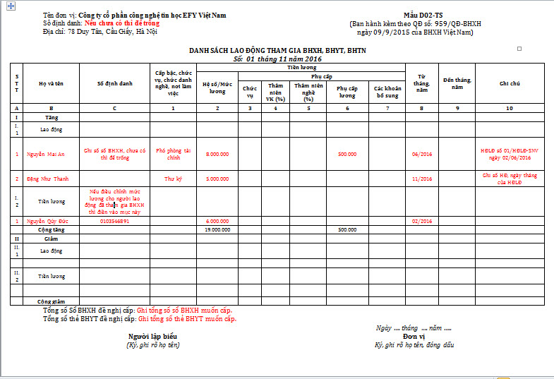 D02 Ts Danh Sach Lao động Tham Gia Bhxh Bhyt Bhtn Theo Quyết định 959 Qđ Bhxh
