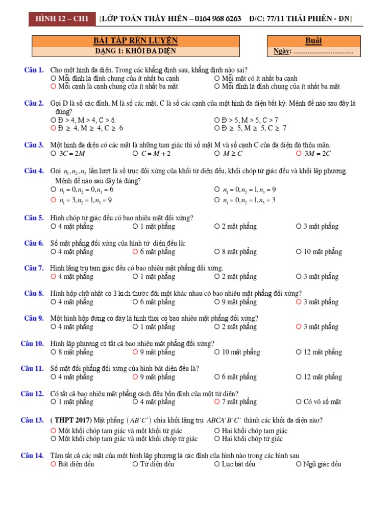 Trắc Nghiệm Về Cac Khai Niệm Lien Quan đến Khối đa Diện Page 2 Tăng Giap