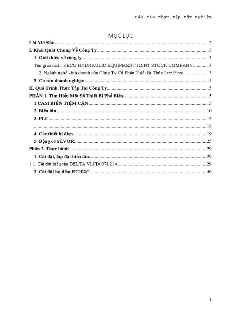 Mục Lục Báo Cáo Tốt Nghiệp